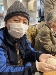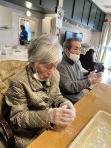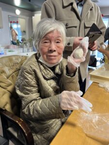 グループホームゆうかりさんにお邪魔しまして、ついたお餅を丸めます。みなさん、真剣✨そして慣れた手つきで丸めて行きます♪